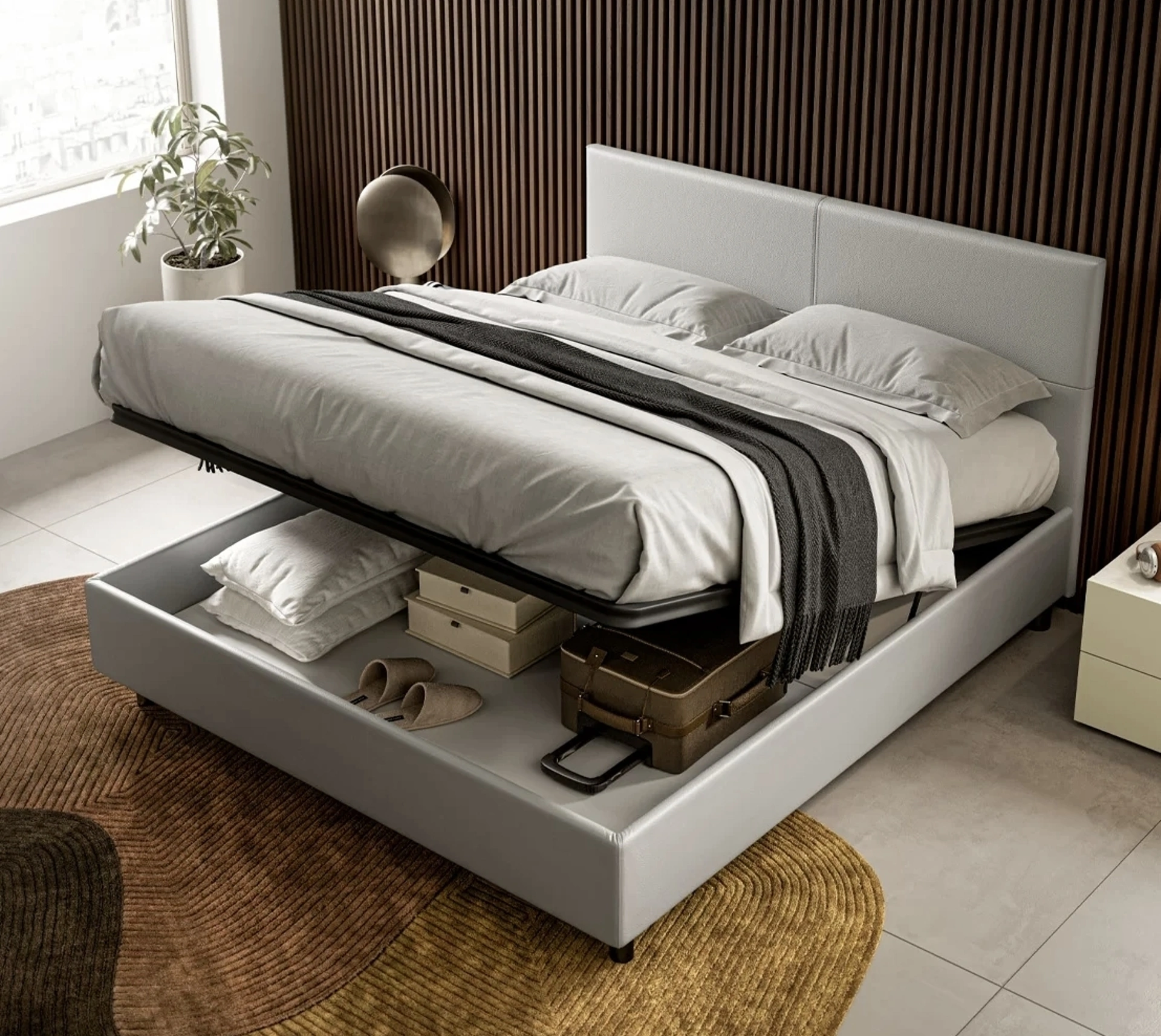 Il rinomato marchio è lo specialista del buon sonno: un ricco catalogo di modelli matrimoniali con contenitore, anche realizzati in ecopelle, ti attende in negozio. Con noi potrai realizzare la camera proprio come l'avevi immaginata, funzionale ed esteticamente gradevole nonché completa di una vasta scelta di accessori moderni. Letto con contenitore Bora di SantaLucia: si rivelerà l'ideale per spazi moderni, è una soluzione pensata per garantire il sonno più profondo ogni notte. Con i Letti matrimoniali in ecopelle di SantaLucia, tra cui il modello nell'immagine, avrai nella tua camera un pezzo di arredo bello e accogliente.