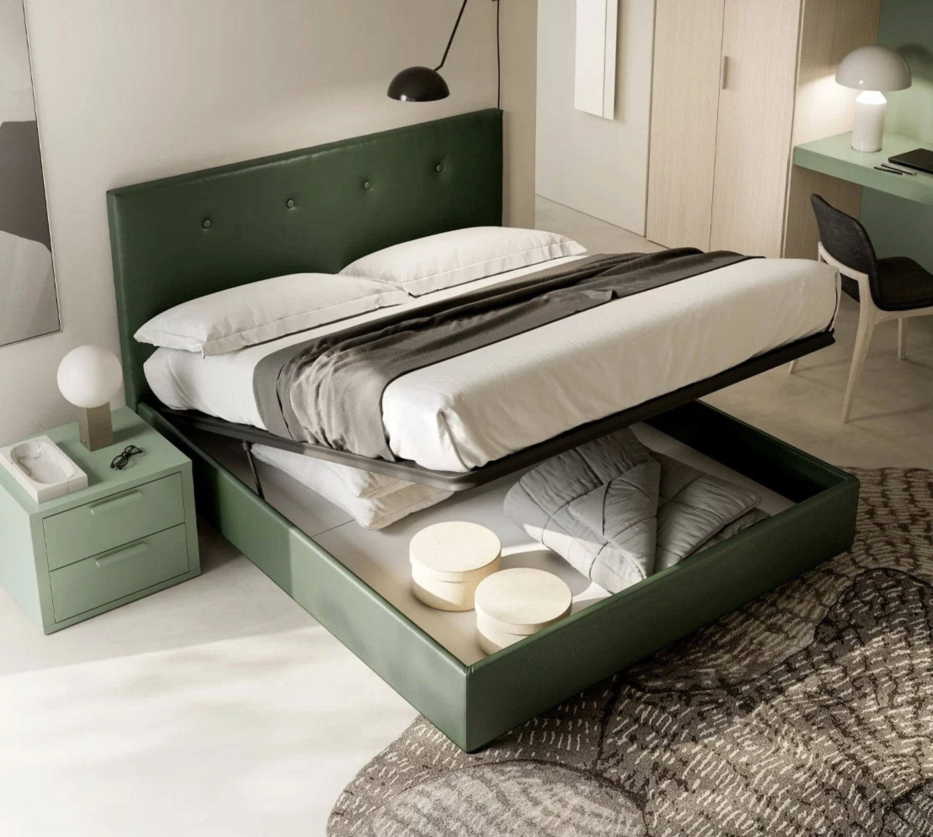 Se desideri ricreare un'atmosfera intima e rilassante, il modello presente in foto fa per te: nella stanza del relax dovrai ricreare un'atmosfera rilassante, per farti ritemprare le energie psicofisiche ogni notte. Durata delle finiture e grande comfort sono gli aspetti che distinguono tutti i prodotti della firma, tra cui anche il letto in ecopelle nell'immagine. Scopri nel nostro punto vendita un ricco catalogo di Letti con contenitore, mobili e complementi per la camera da letto dei migliori produttori. Se desideri progettare spazi moderni, ti aspettiamo per proporti la nostra profilo di Arredamento Casa per realizzare il tuo concept su misura.