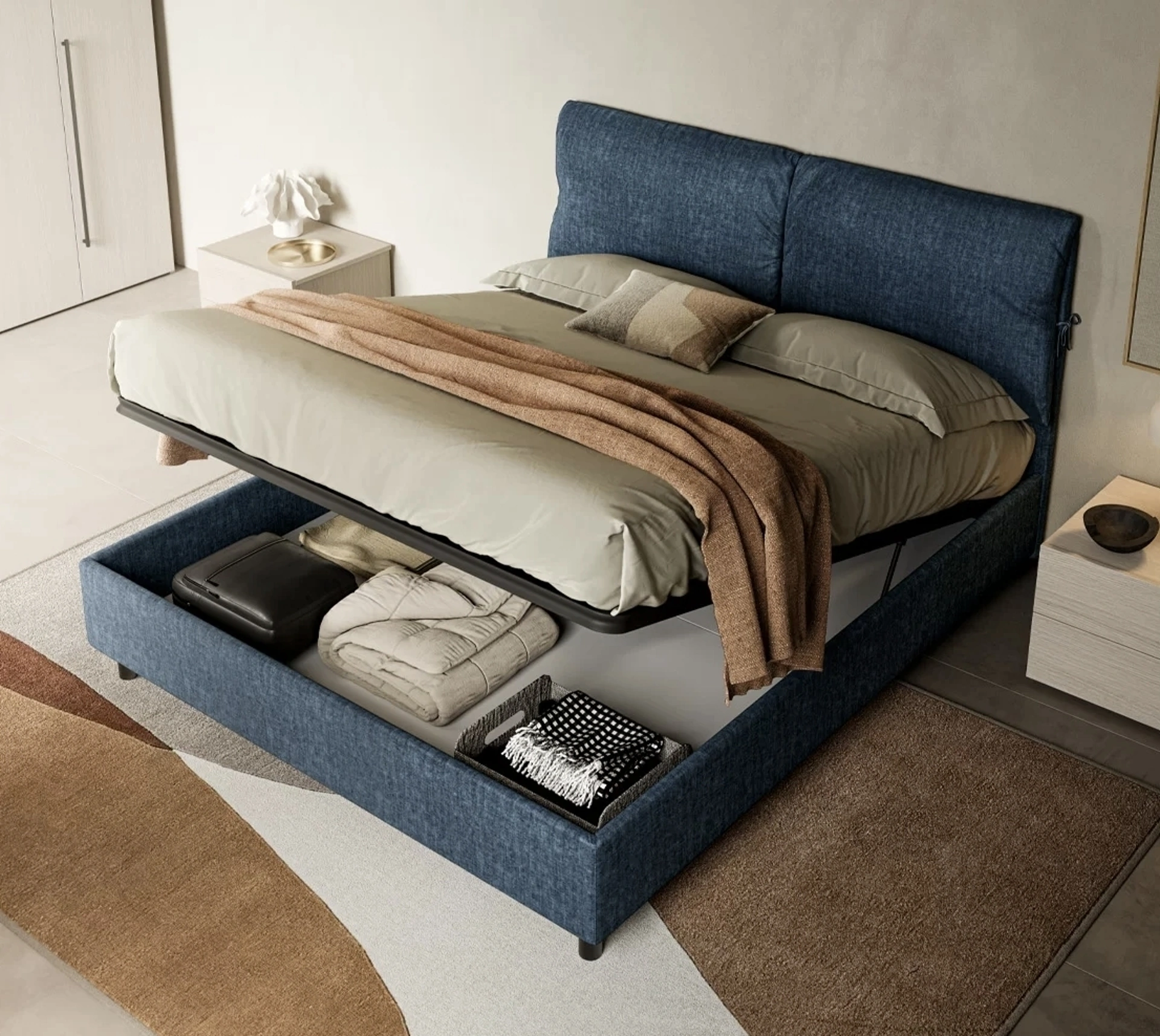 Scegli tonalità e finiture e realizza il tuo progetto d’arredo nella camera da letto, progettandola proprio come l'hai sempre immaginata. Durante l'acquisto della giusta tipologia di letto, valuta con cura le sue misure, i materiali, la forma e il suo stile rispetto al resto dell'arredo. I Letti matrimoniali con contenitore dell'azienda, specialista nella realizzazione di Arredamento Casa per la zona notte, sono pensati per essere abbinati a mobili e complementi di ogni genere, come armadi e comò, abat jour e piantane. Il Letto con contenitore Taku di SantaLucia ricrea uno spazio familiare e confortevole in ogni camera da letto, garantendoti il riposo migliore e uno stile unico.