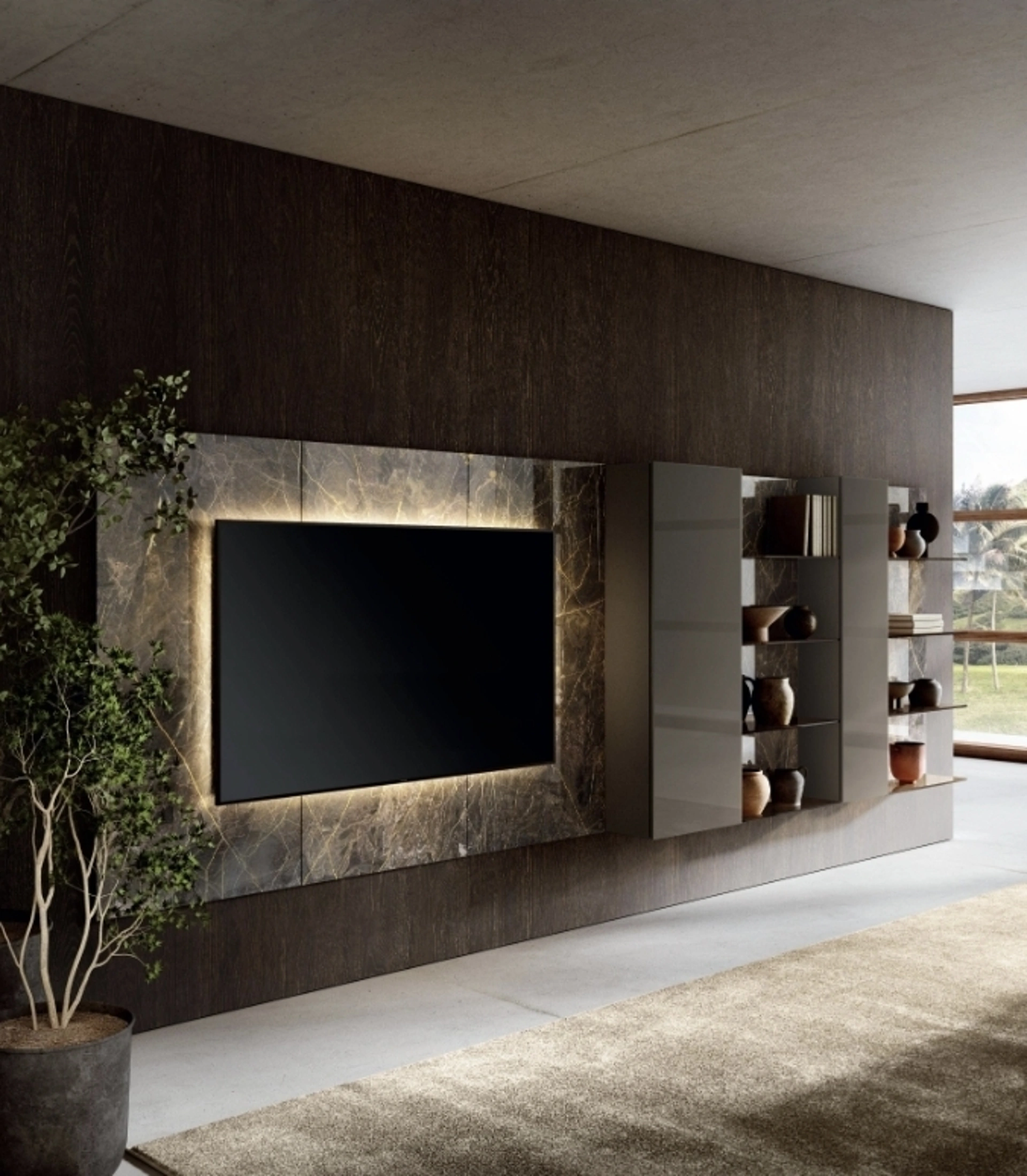 Attraverso un gioco dinamico di accostamenti fra componenti a giorno o vani chiusi, le Pareti Attrezzate moderne arredano il soggiorno sfruttando bene ogni spazio. Questa parete attrezzata è una delle soluzioni dell'azienda e ti permetterà di ammobiliare la zona giorno secondo le più personali esigenze abitative. Le Pareti Attrezzate hanno acquisito un posto di primo piano nella zona giorno delle nostre case: sono arredi plurifunzionali e salvaspazio sempre realizzabili su misura per te.