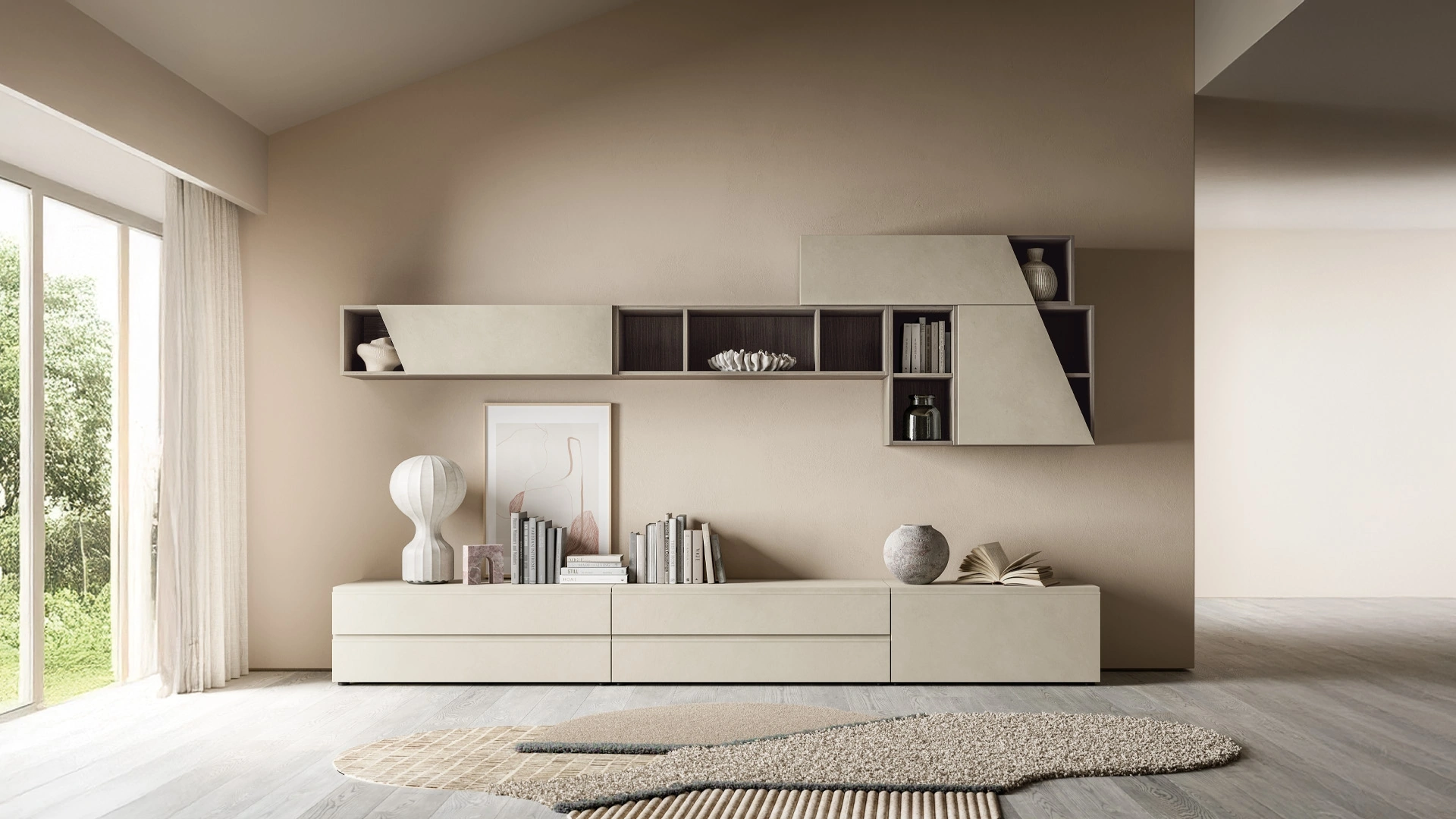 SantaLucia offre a catalogo originali modelli di mobili soggiorno, diversi per stile e conformazioni, texture e accessori: scopri in negozio l'Arredamento Casa delle migliori marche. I mobili soggiorno in melaminico dalle linee moderne come il modello nella fotografia sono veramente versatili e capaci di allestire il soggiorno ottimizzando ogni angolo. La Parete Attrezzata Pratico PTG421 di SantaLucia nella fotografia è una delle più belle soluzioni d’arredo sul mercato: l'alta componibilità e le differenti opportunità di progettazione la rendono bella e di grande qualità. Visto che il living deve essere uno spazio funzionale e di grande valore estetico, sono necessari alcuni mobili belli e pratici come le Pareti Attrezzate.
